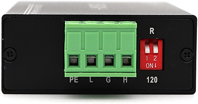 注意:USBCAN-I Pro內(nèi)部已集成120Ω終端電阻,可通過撥碼開關(guān)選擇是否將電阻接入總線,撥碼開關(guān)在4pin端子旁邊,R1、R2兩個(gè)開關(guān)控制同一個(gè)電阻,請(qǐng)一起對(duì)R1、R2進(jìn)行操作,撥到ON的位置即可將電阻啟用。