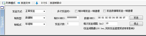 通道選擇:在左上角“通道”下拉框中選中用于DBC消息發(fā)送的設(shè)備通道;