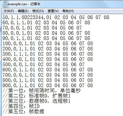 文本文件便于數(shù)據(jù)保存及后期分析,批處理文件可通過記事本軟件進(jìn)行修改后重新發(fā)送回總線。