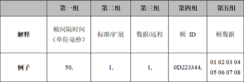 第三位(3):打開第幾路CAN,打開CAN1輸入1,打開CAN2輸入2同時(shí)打開CAN1和CAN2輸入3;