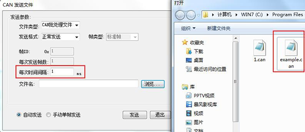 添加:點(diǎn)擊【+】按鈕從DBC消息選擇列表中添加消息至發(fā)送列表;