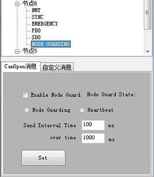 GCANTools軟件中的節(jié)點(diǎn)保護(hù)(NODE GUARDING)功能有兩種實(shí)現(xiàn)方式——主站主動(dòng)發(fā)送命令來詢問從站節(jié)點(diǎn)的狀態(tài)(Node Guarding)、從站節(jié)點(diǎn)以心跳的方式周期傳送它的狀態(tài)(Heartbeat)。