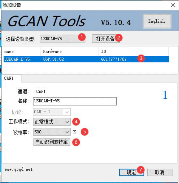 ⑤波特率選擇:您可在此處進(jìn)行波特率的選擇。波特率對(duì)于CAN總線的通信至關(guān)重要,通信前您需要確定目標(biāo)設(shè)備或目標(biāo)總線的波特率。