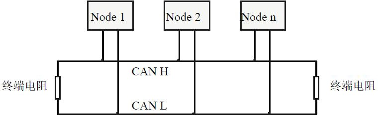 GCAN-201模塊接入CAN總線連接方式為將CAN_H連CAN_H,CAN_L連CAN_L即可建立通信。CAN總線網(wǎng)絡采用直線拓撲結(jié)構(gòu),總線最遠的2個終端需要安裝120Ω的終端電阻;如果節(jié)點數(shù)目大于2,中間節(jié)點不需要安裝120Ω的終端電阻。對于分支連接,其長度不應超過3米。CAN總線總線的連接見圖所示。CAN總線網(wǎng)絡的拓撲結(jié)構(gòu)