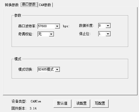 請注意:GCAN-201設備只能通過RS232接口進行配置,不能通過RS485接口進行配置。