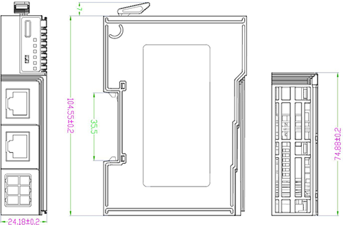 GCAN-IO-8201 EtherCAT總線耦合器外觀及尺寸圖