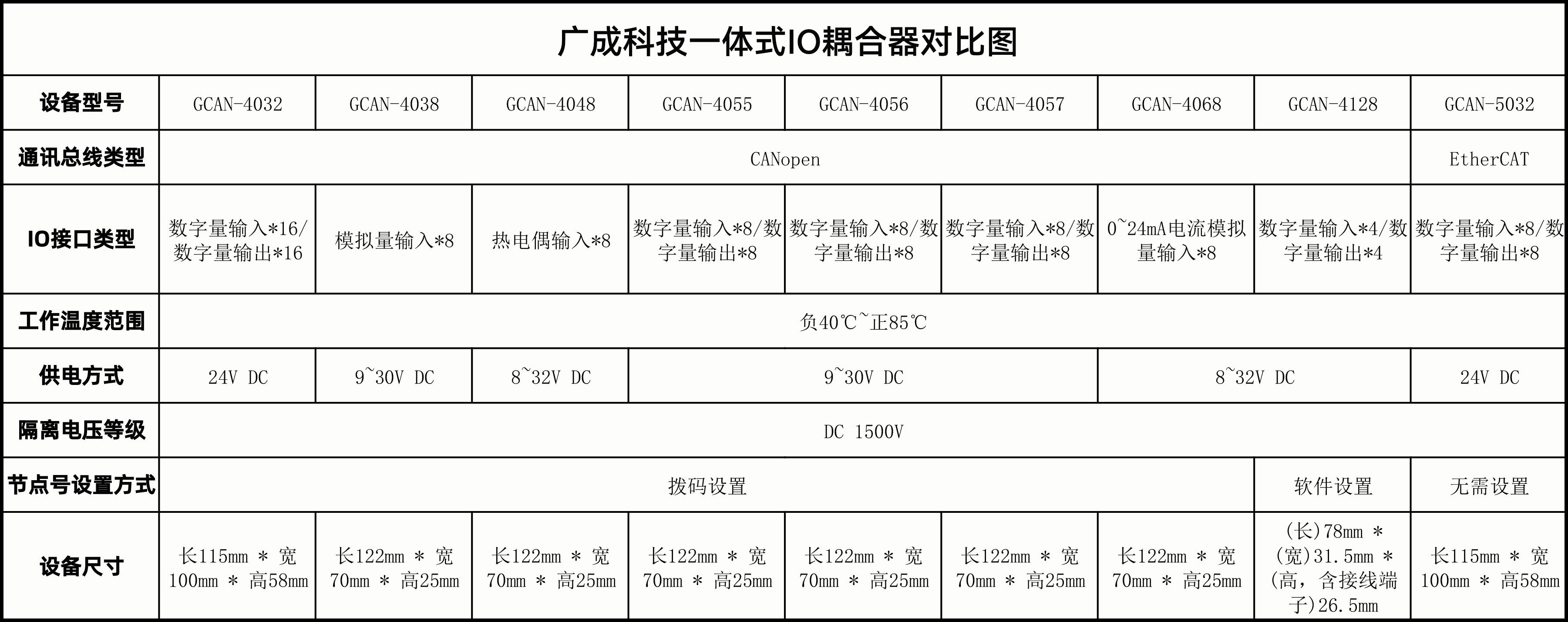 一、設(shè)備簡介沈陽廣成科技總線IO耦合器家族包括多個型號,目前有GCAN-4032/4038/4048/4055/4056/4057/4068/4128/5032等一體式總線IO耦合器,8000/8001/8100/8101/8200/8201/8300等組合式總線IO耦合器,它們主要用于總線IO擴(kuò)展,實現(xiàn)工業(yè)自動化的遠(yuǎn)程控制。