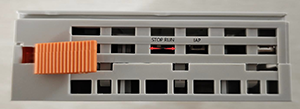 GCAN-PLC-425提供1個程序運行開關和1個復位按鍵。設備頂端實物圖如圖所示: