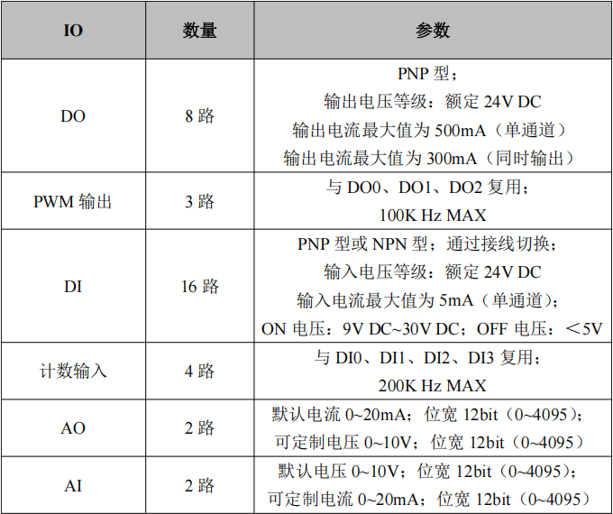 ● 8路DO(3路PWM脈沖輸出);16路DI(4路計(jì)數(shù)輸入);