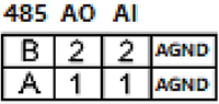 下方兩排端子排的左側(cè)為RS485、AI和AO端子排,如圖所示。RS485端子對(duì)應(yīng)的序號(hào)及其含義如表所示: