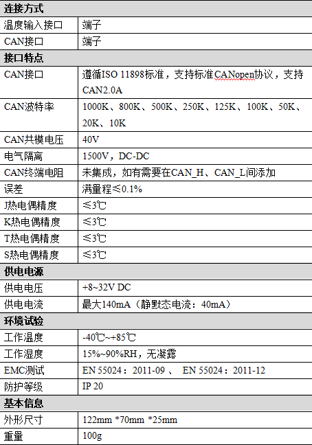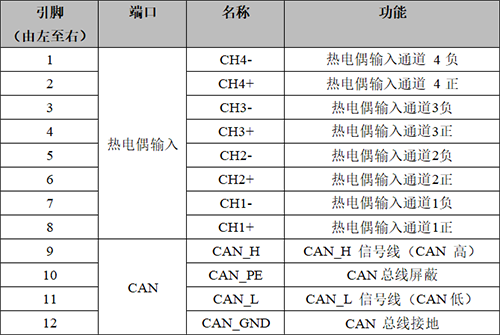 4路熱電偶輸入、CAN-bus接口定義