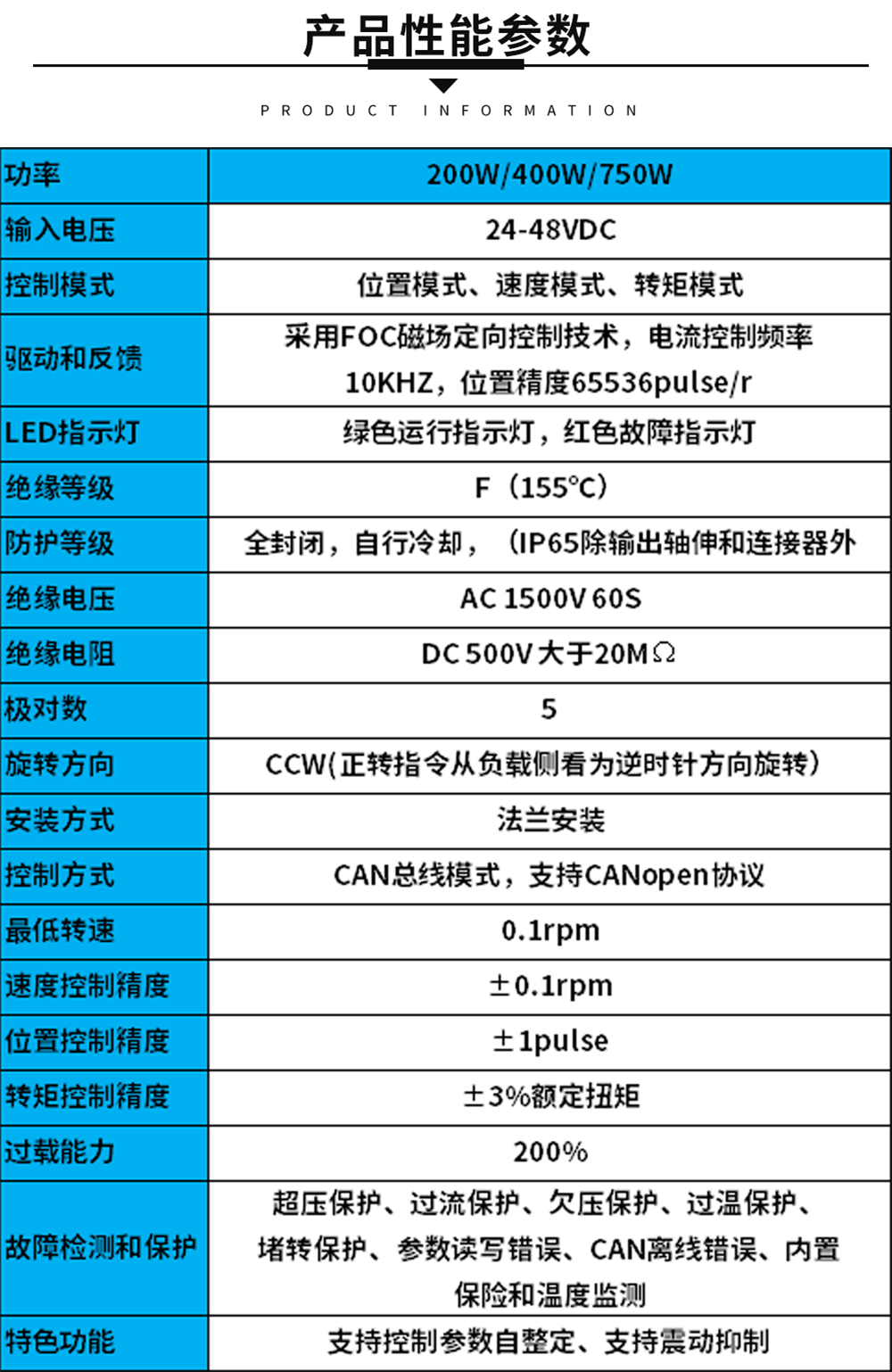①額定扭矩精度可達(dá)±3% ②速度控制精度可達(dá)±0.1rpm ③位置精度±1Pulse低負(fù)載,低力矩;高負(fù)載,大力矩。自行冷卻,功能優(yōu)化力求精進(jìn)。